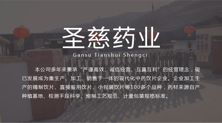 甘肅天水圣慈藥業(yè)有限公司成立于2016年11月8日,注冊資本500萬元,位于甘肅省天水市張川回族自治縣張川鎮(zhèn)中城南路,本公司多年秉承“嚴謹高效、誠信經營、互贏互利”的經營理念,現(xiàn)已發(fā)展成為集生產、加工、銷售于一體的現(xiàn)代化中藥飲片企業(yè)。企業(yè)加工生產的精制飲片、直接服用飲片、小包裝飲片等100多個品種,藥材來源自產種植基地、檢測手段科學、炮制工藝規(guī)范、計量包裝規(guī)格標準。